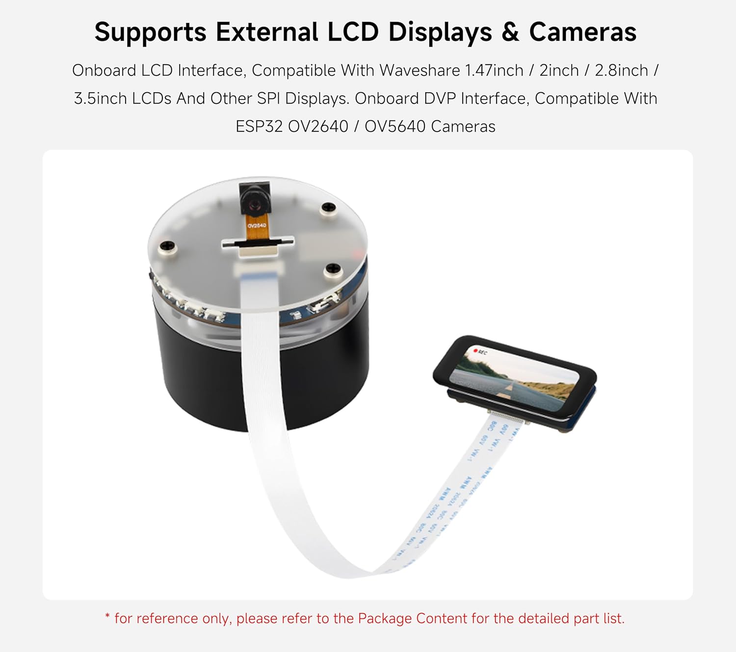 | Compatible Devices | 1.47inch LCD, 2inch LCD, 2.8inch LCD, 3.5inch LCD, OV2640 camera, OV5640 camera |