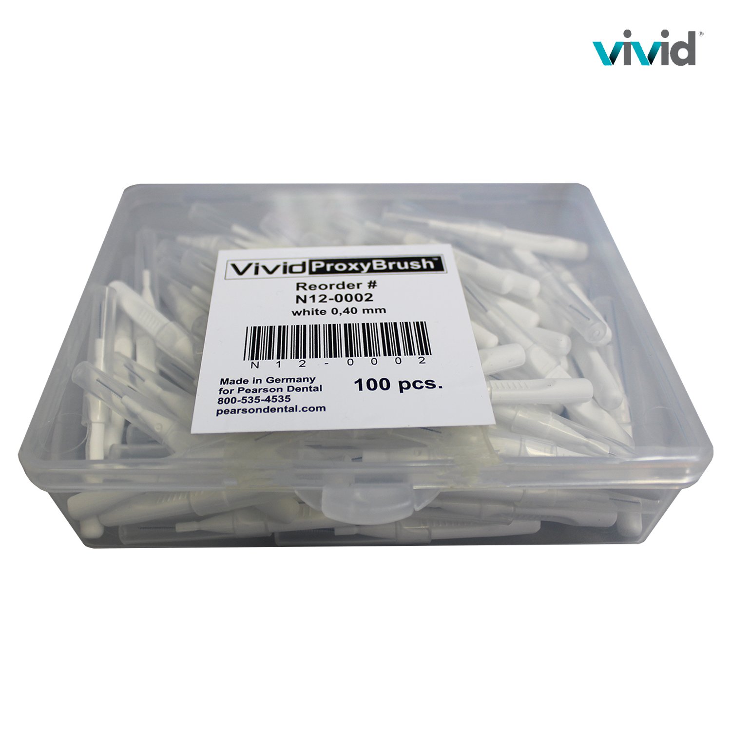 Premium Quality Interdental Brushes for Interproximal Cleaning, Professional Interdental Cleaners, Tight Teeth, Pkg of 100, ProxyBrush, by Vivid (XXX-Small, 0.4mm, White)