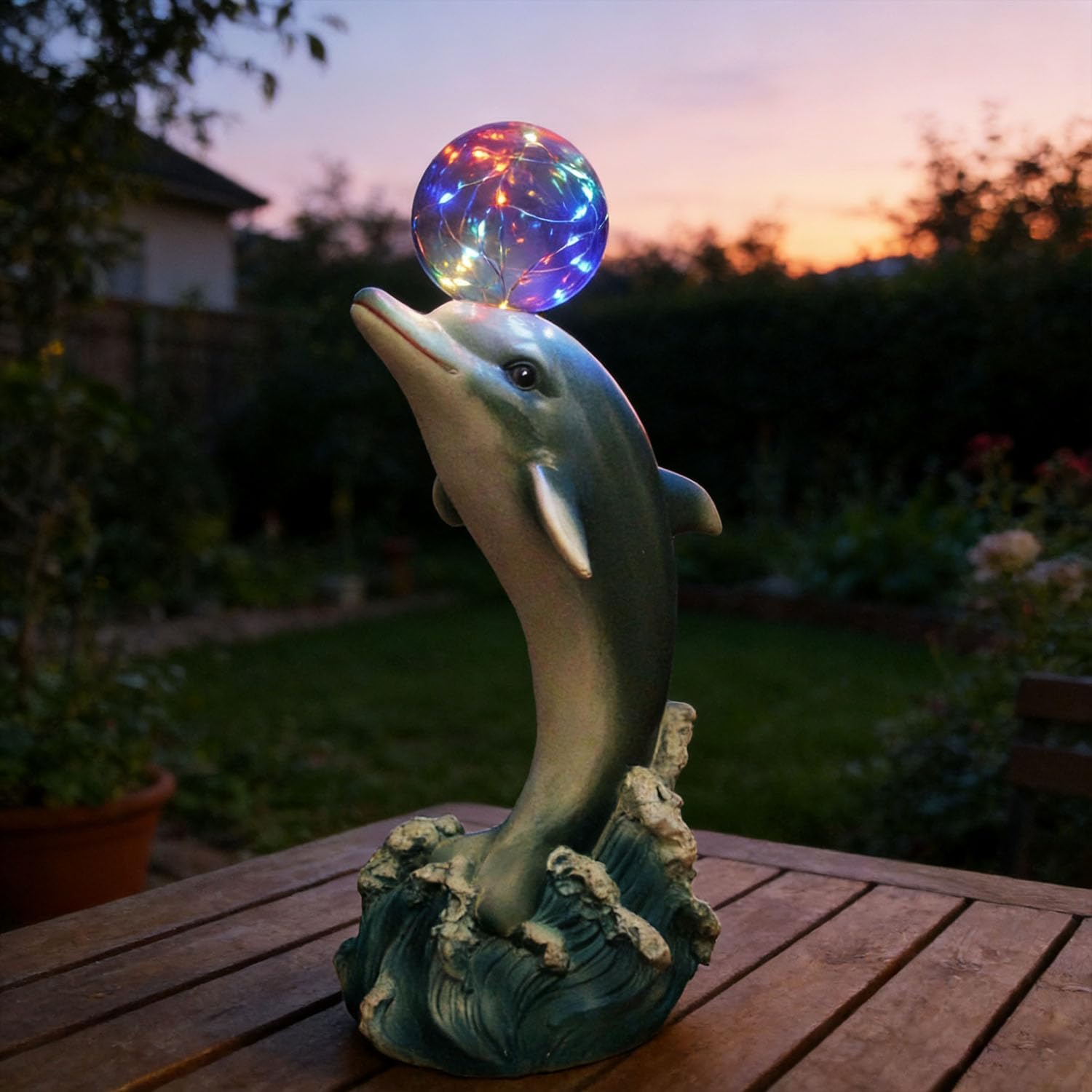 【The dolphin with the ball light】: With a mischievous and adorable appearance! It showcases meticulous details and realistic textures. A dolphin with a ball light can become the topic of conversation, making your outdoor garden more eye-catching.
