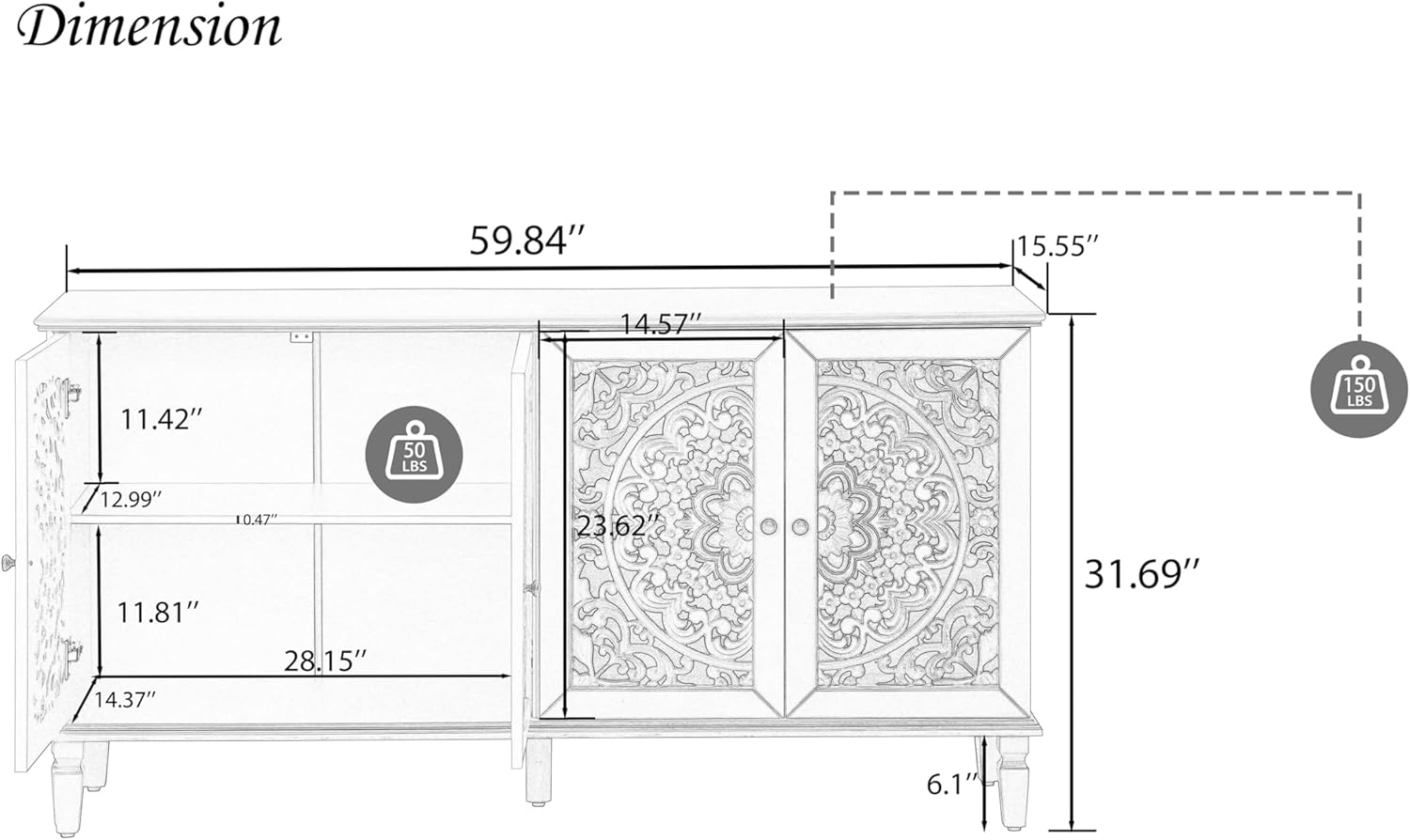| Size | 59.8 inches (W) x 15 inches (D) x 31.5 inches (H) |